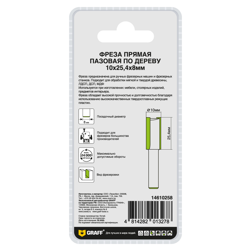 Фреза пазовая по дереву 10х25,4x8 мм GRAFF