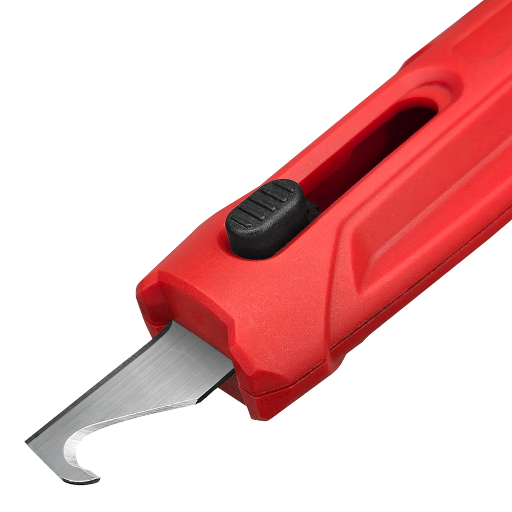 Данная модель оснащена встроенным выдвижным ножом электрика. Одна сторона имеет прямое лезвие, а другая — крюкообразное. Данное лезвие идеально подходит для всех видов резки, которые может выполнять электрик особенно в труднодоступных местах.