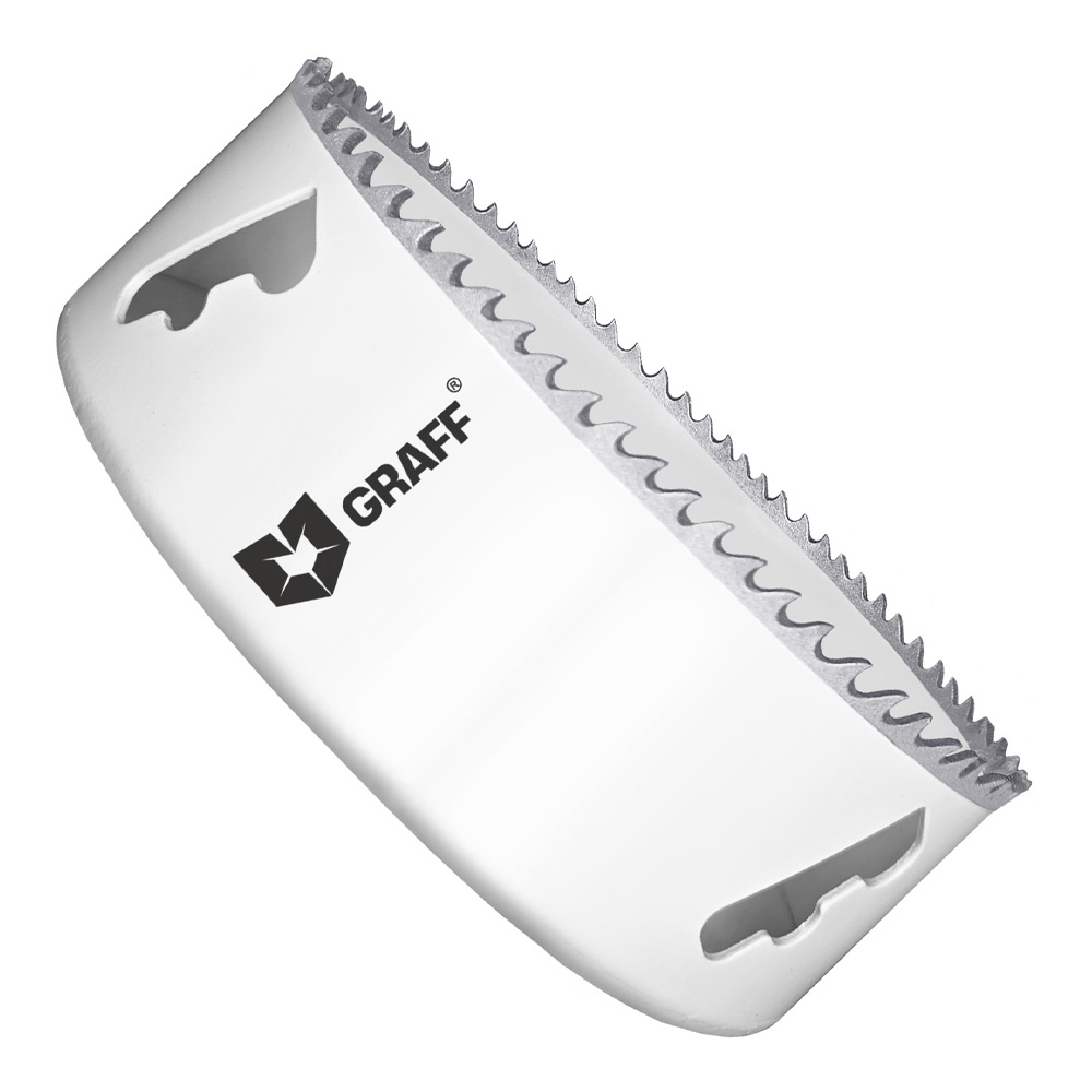 Глубина реза биметаллических коронок GRAFF составляет 38 mm. Особая поступательная конфигурация и развод зубьев обеспечивают быстрое удаление стружки и более чистый рез. Специальная форма рычажных отверстий в корпусе облегчает извлечение из коронки обрабатываемого материала. Применяется в дрелях, легких перфораторах и стационарных станках только в безударном режиме, с возможностью регулировки оборотов.