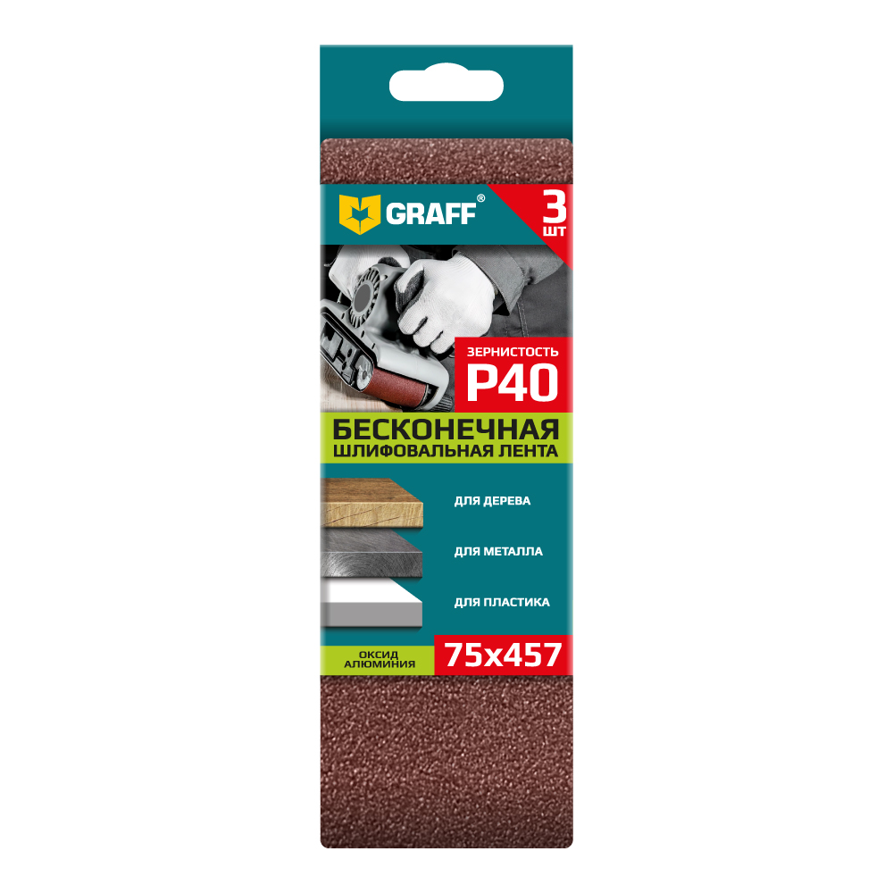 Лента шлифовальная 75 мм Р40 бесконечная длина 457 мм GRAFF