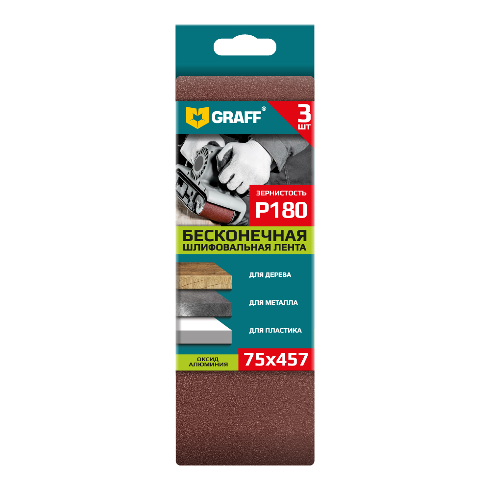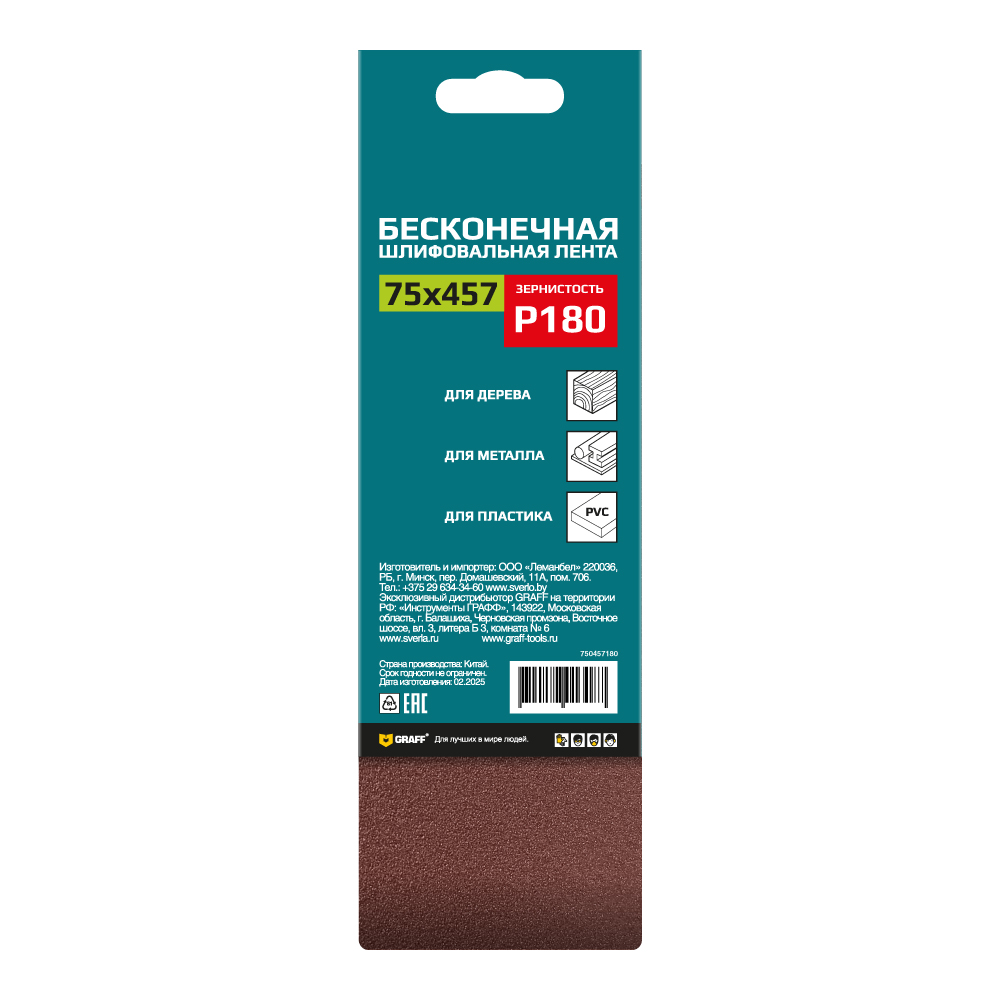 Лента шлифовальная 75 мм Р180 бесконечная длина 457 мм GRAFF