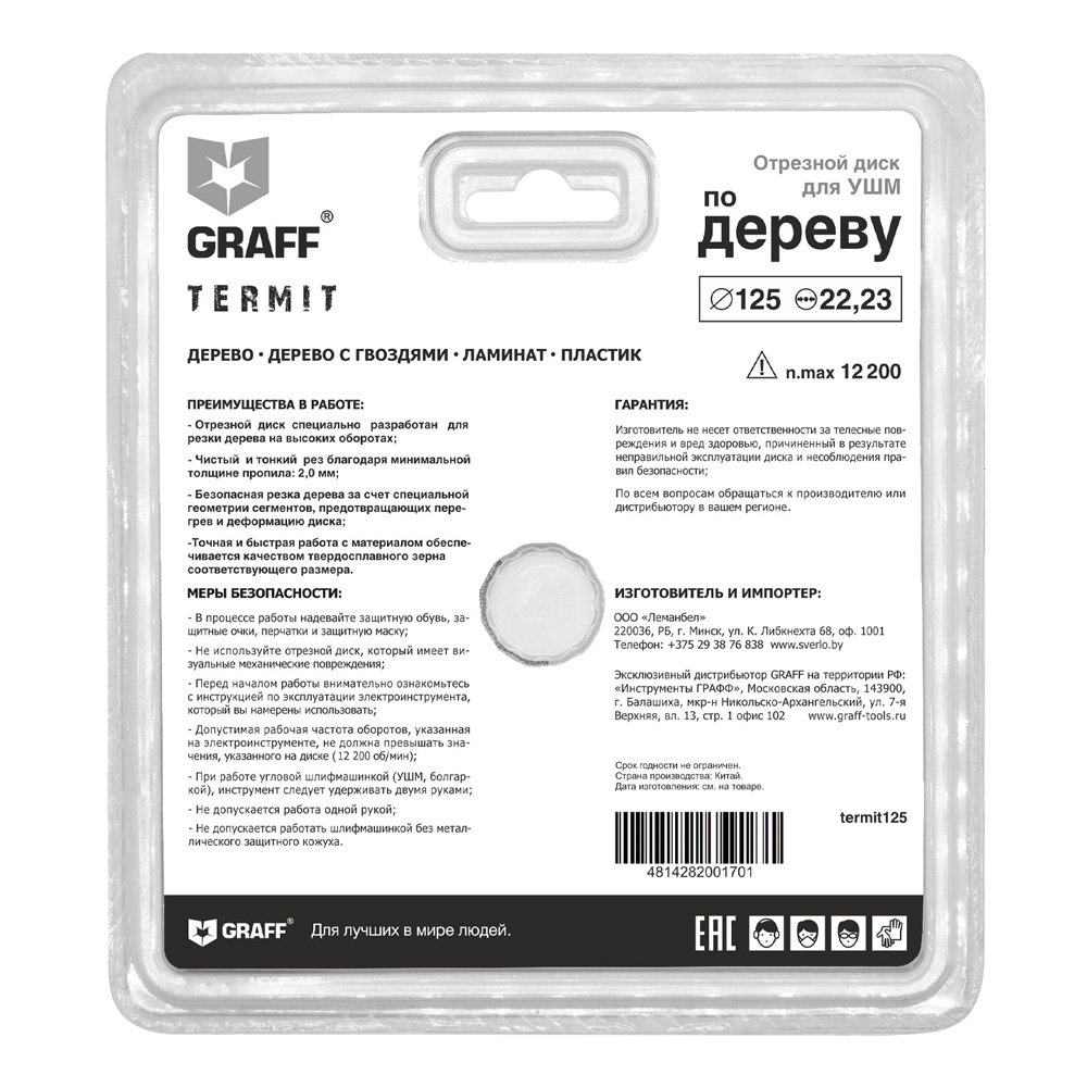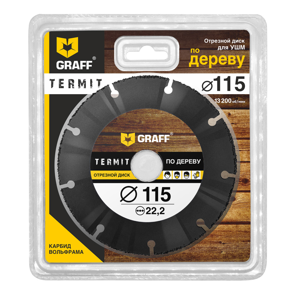 Отрезной диск по дереву 115 мм для болгарки (УШМ) GRAFF Termit