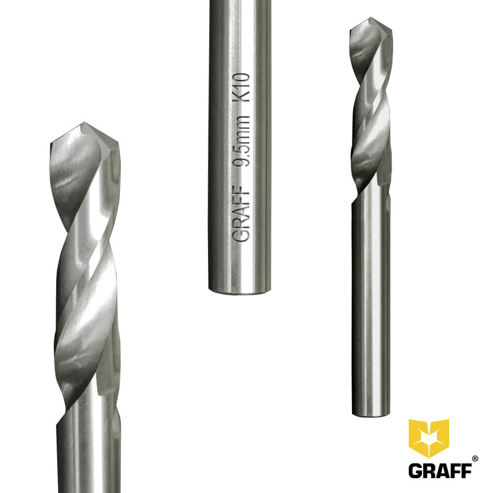 Сверло цельнотвердосплавное (монолитное) 9,5 мм К10 GRAFF с цилиндрическим хвостовиком применяется для обработки почти всех марок стали (в том числе высокопрочной и нержавеющей, в том числе идеально подходит для закаленных и пружинных сталей), титановых сплавов, чугуна, бронзы, латуни, меди и других труднообрабатываемых материалов.