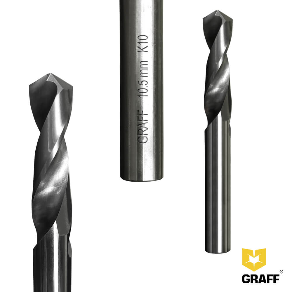 Сверло по металлу 10,5 мм цельнотвердосплавное (монолитное) K10 GRAFF