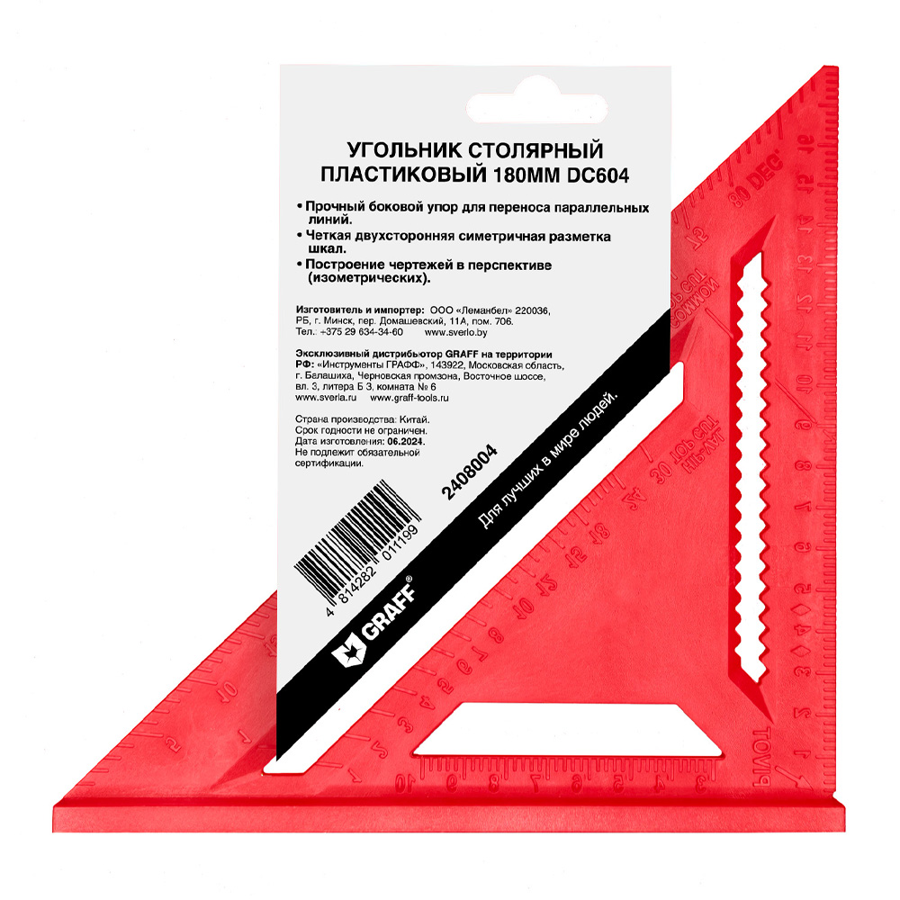 Угольник столярный пластиковый 180 мм DC604 GRAFF
