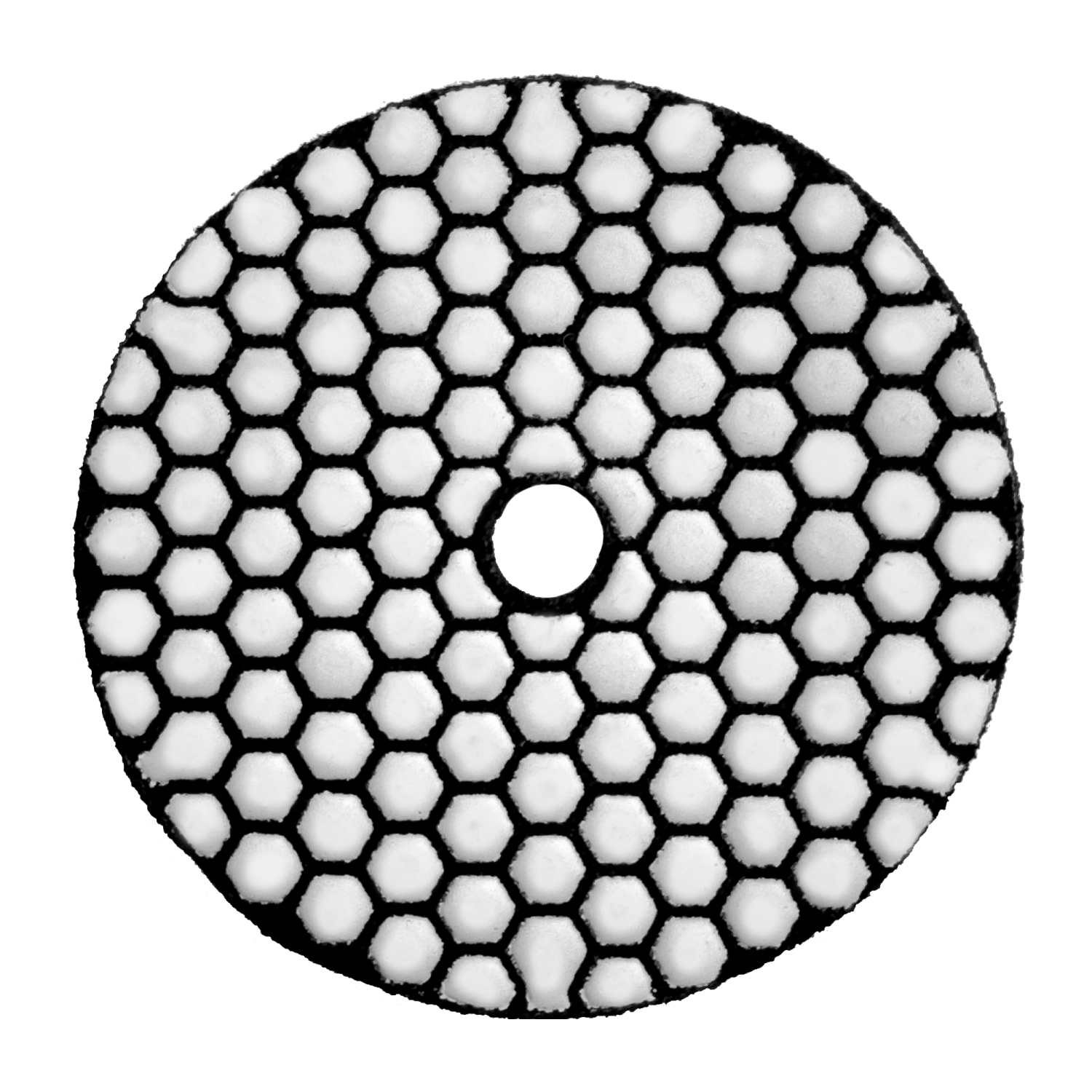 ОписаниеАлмазный шлифовальный круг представляет собой гибкую основу с алмазным напылением, что обеспечивает высокую эффективность и долговечность работы. Гибкая основа позволяет обрабатывать изогнутые поверхности, углы, торцы, труднодоступные участки, что особенно важно при выполнении отделочных работ. Рабочая поверхность алмазного круга состоит из шестиугольных сегментов (сот) с промежутками между ними, что обеспечивает охлаждение и эффективный отвод шлама в процессе шлифовки без применения охлаждающей жидкости. Круги используются для шлифования и полирования изделий из натурального и искусственного камня, керамогранита, керамической плитки, кварца, мрамора, гранита, бетона. Не применяется для обработки металла и дерева.