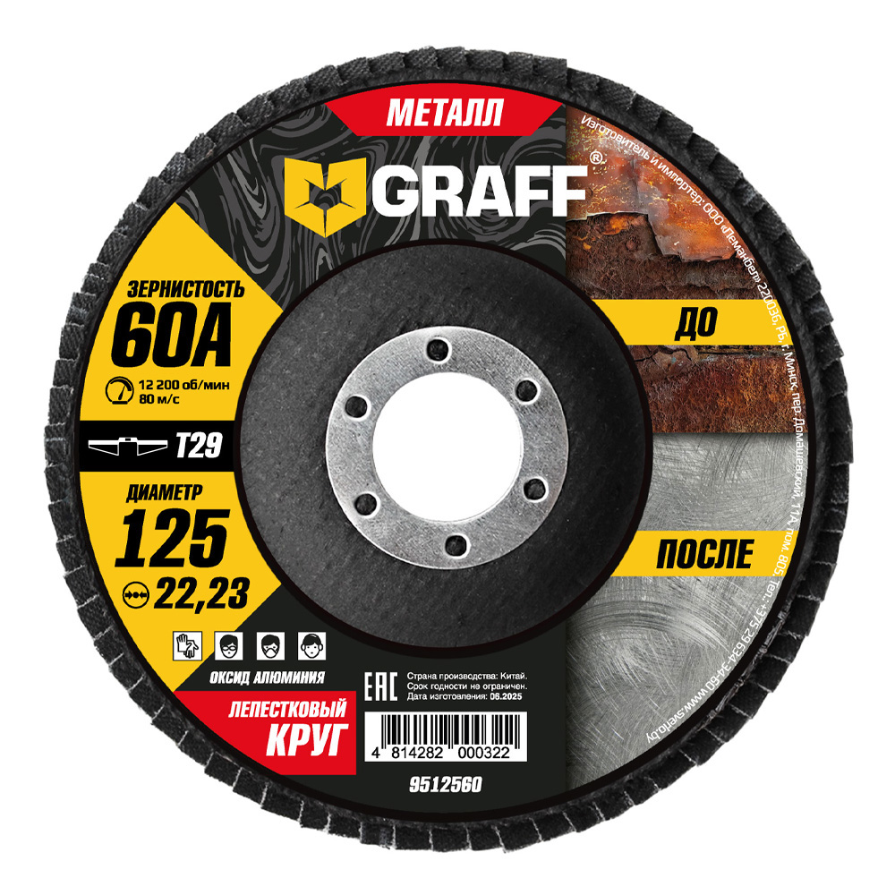Круг лепестковый 125 мм 60А по металлу GRAFF